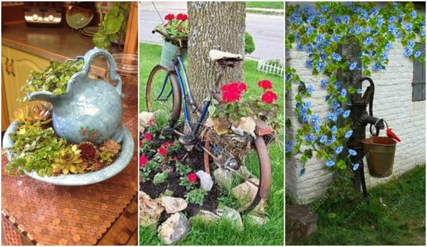 Altes Gartenwerkzeug in super kreative, einzigartige Dekorationen oder praktische Gegenstände mit einer anderen Funktion umwandeln.
